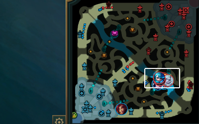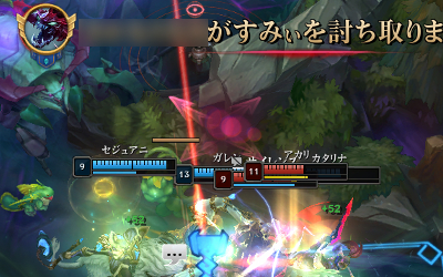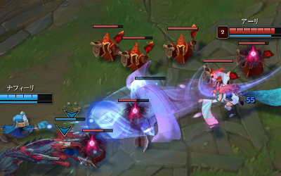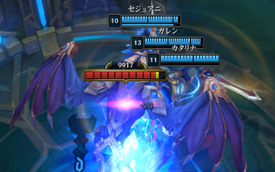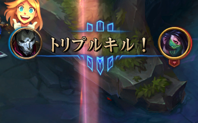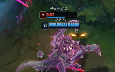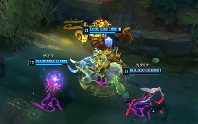 MIDレーナ―のカタリナさんがBOTレーンに降りてきてダイブ待機してくれてたので、タワーにミニオン押し付け。