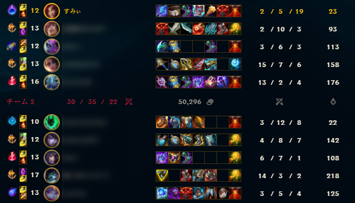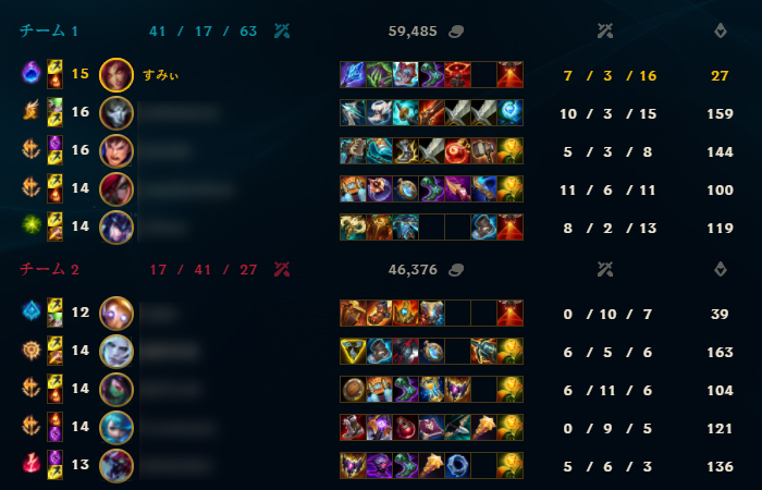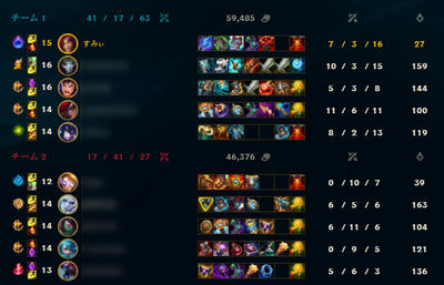 結局試合は相手TOPのヨリックが、ガンガンタワー破壊していってくれて負けてしまった…!残念!!