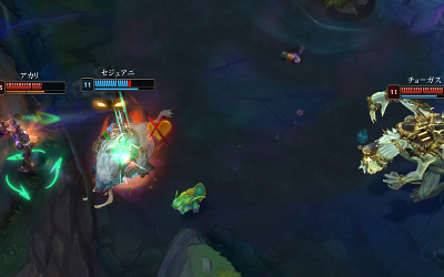 相手側はTOPグウェン・JGヴィエゴ・MIDアカリ・APCチョガス・SUPブリッツの5人PT組。