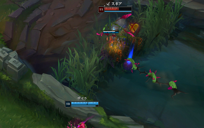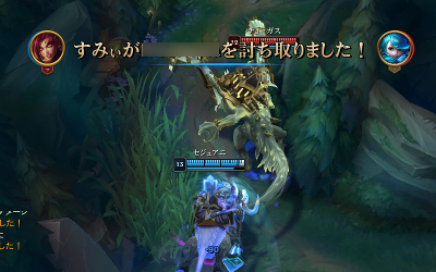 いつものように自陣ジャングル内に敵が入ってこないようにブッシュの中から偵察していたのです。