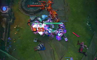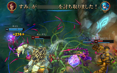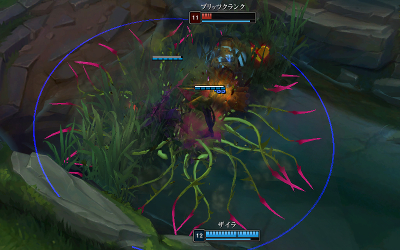 BOTレーンにHさんと一緒に行き、相手の体力を少しずつ削っていく中、再び凶悪なフックがHさんに襲い掛かったのです。